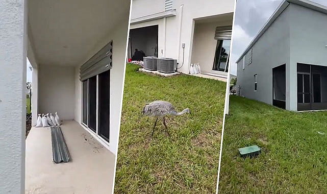 Kadının videosunda, camların kırılmaması için pencerelerin önünün sac demirlerle kapatıldığı görüldü. Bu önlemler, kasırganın etkilerini minimize etti. Ayrıca, evin bahçesinde tropikal leyleklerin de bulunduğu dikkat çekti.