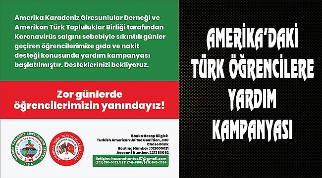 Amerika Birleşik Devletleri'nde Corona virüs salgını devam ederken, Amerika Karadeniz Giresunlular Derneği ve Amerikan Türk Toplulukları Birliği ortaklaşa yardım kampanyası başlattı.
