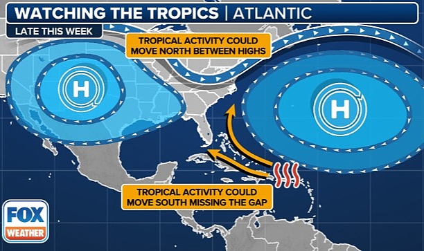 Biri güney ovalarının üzerinde, diğeri Bermuda yakınlarında Atlas Okyanusu'nda demirlemiş iki büyük yüksek basınç alanı, fırtınanın Florida'ya doğru mu ilerleyeceğini, yoksa güneyde kalıp Meksika Körfezi'ne mi gireceğini belirleyebilir.