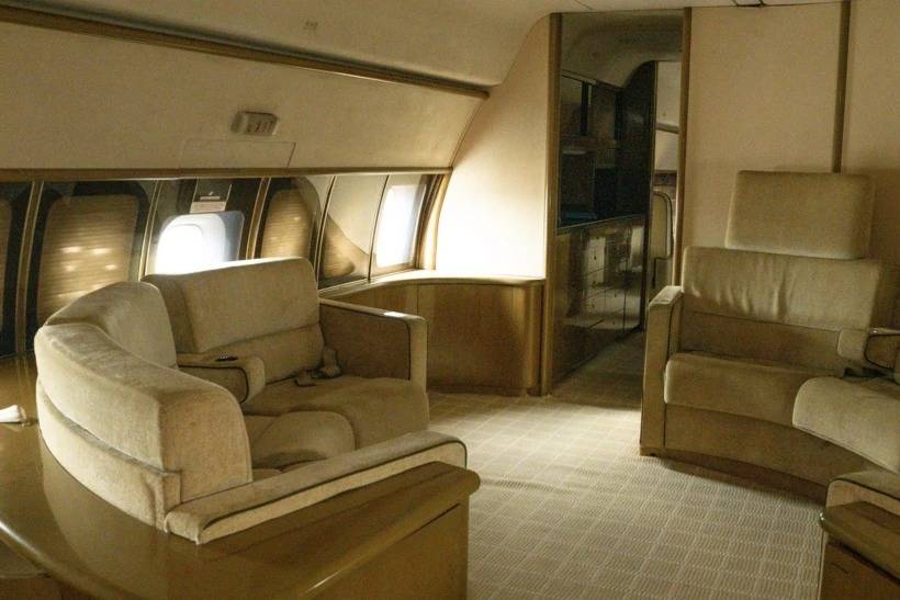 Uçakta bir yatak odası, üç ayrı oturma alanı, bir mutfak ve iki banyo bulunuyor. Lavabolarda ve dolaplarda ise yıllardır dokunulmamış kişisel eşyalar dikkat çekiyor.