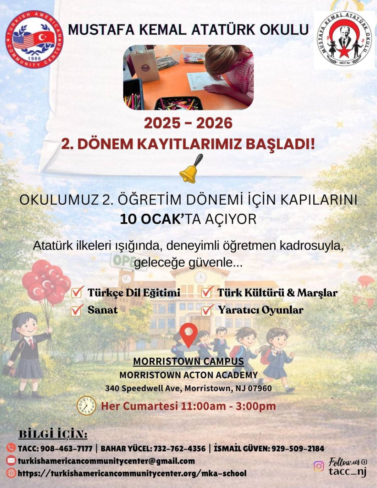 Kayıt süreci ve eğitim programına ilişkin ayrıntılı bilgi almak isteyen veliler ve ilgililer, Türk Amerikan Toplum Merkezi (TACC) ile iletişime geçebilir.