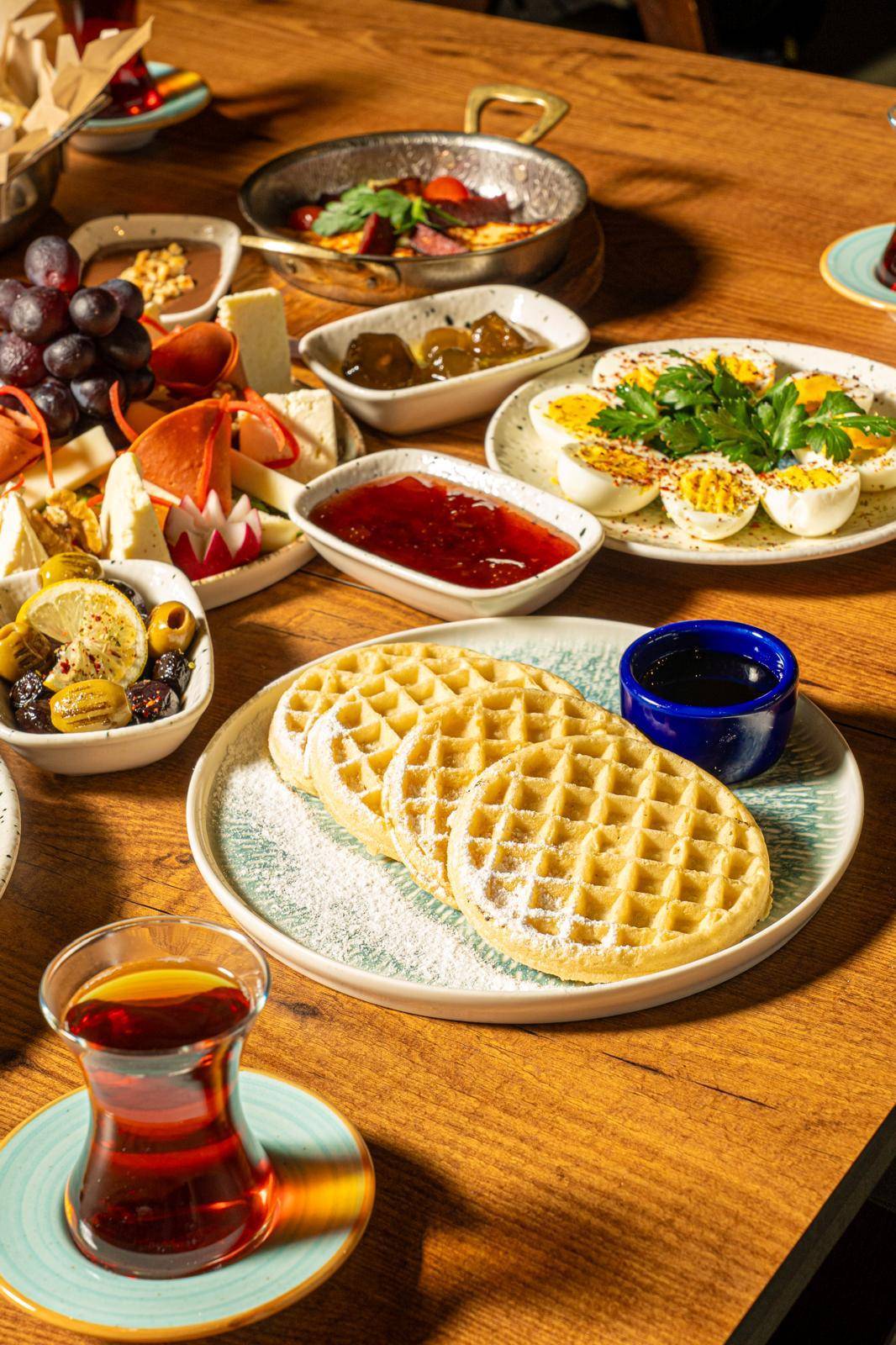 Bu zenginliğe eşlik eden taze meyve tabakları ve modern bir yorum katan waffle tabağı, Blue Fig Garden’ın kahvaltı şölenini adeta kusursuz bir finalle tamamlıyor.