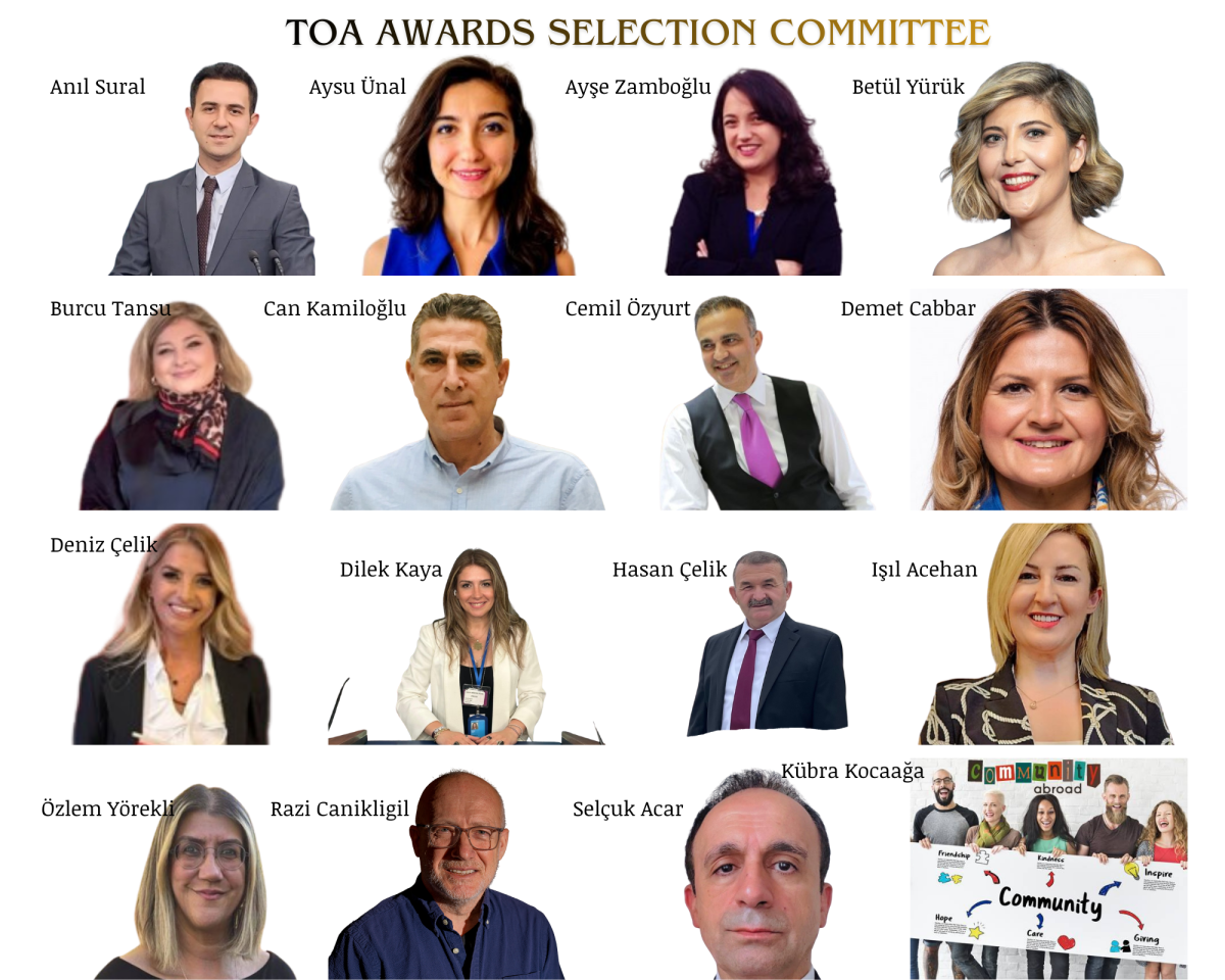 Seçici kurul tarafından belirlenen adaylar daha sonra diplomasi, akademi, iş dünyası ve medya alanlarından saygın isimlerin yer aldığı TOA Awards Jürisine sunuluyor. Juri arasında ise aralarında diplomatlar, sivil toplum örgüt liderleri, iş insanları, akademisyenler bir birinden değerli 24 isim yer alıyor.