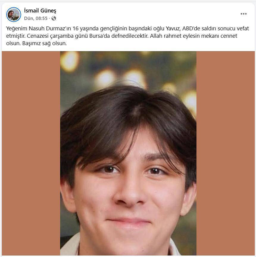 Genç Yavuz Durmaz’ın naaşının, cenaze namazının ardından Türkiye’ye gönderildiği ve memleketi Bursa’da toprağa verileceği bildirildi.
