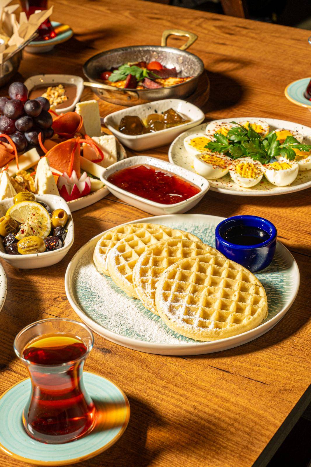 Saat 11 A.M. ile 2 P.M. arasında servis edilen kahvaltıda yaklaşık 30 çeşit lezzet yer alıyor. Menemen, sucuk, Erzurum usulü pişi, sigara böreği, peynir çeşitleri, zeytinler, reçeller, bal-kaymak, söğüş tabağı, haşlanmış yumurta, patates kızartması ve daha birçok seçenek sofraya geliyor. Çay ve kahve ise sınırsız olarak ikram ediliyor.